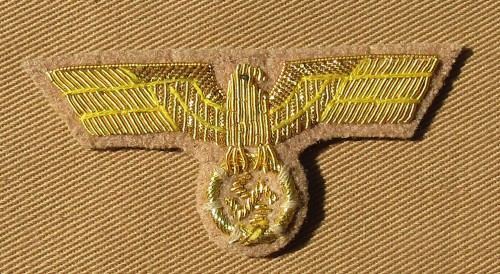 RSE581.NSDAP cap eagle. Gold bullion on tan felt. $13.95pr