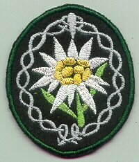 RSE108.German Army mountain troops sleeve patch.Embroidered on green.$3.00