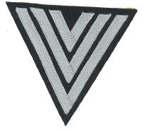 | ERR19. Luftwaffe chevron on blue/grey wool.Oversized. Measures almost 5" across the top, and 4.5 " high. $3.00 |