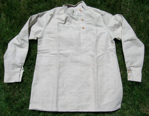 | IMPRUSSHRT1.Imperial Russian enlisted ranks summer weight Gymnasterkas. These are made from a kind of Off White Russian cotton linen. No pockets. 4 button front. Made in Russia. $109.95 |