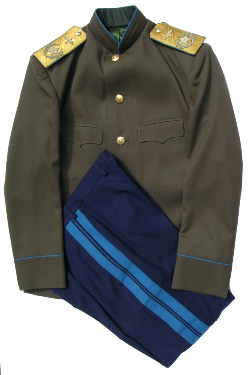 model 1943 service dress uniform (jacket and blue breeches) for Major General Infantry troops. Jacket fabric is high quality late Soviet Army Generals fabric. Buttons are late Soviet Generals type. Size is 58-4. $495.00 |
