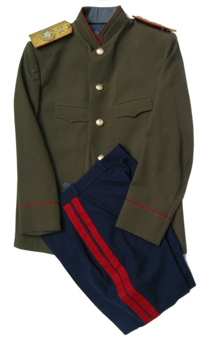 model 1943 service dress uniform (jacket and breeches) for Major General Infantry troops. Jacket fabric is high quality late Soviet Army Generals fabric. Buttons are late Soviet Generals type. Size is 58-4. $495.00 |