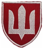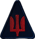 UKW161.Ukrainian Air Force Anti-Aircraft Missile Forces sleeve patch. Red Trident on Blue with Blue border. $9.95