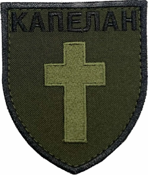 UKW182.Sleeve patch of Armed Forces of Ukraine. Chaplain. Olive Cross on Olive. Velcro backing. $9.95
