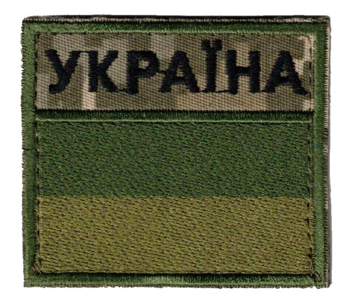 UKW12.Sleeve patch of Armed Forces of Ukraine with Flag. Yellow Trident on Olive. Velcro backing. $14.95