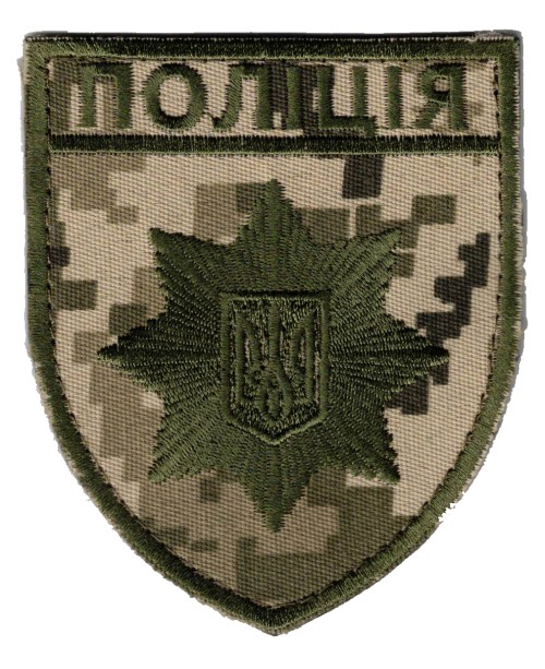 UKW244.Ukrainian Police sleeve patch on Pixel camouflage. $9.95