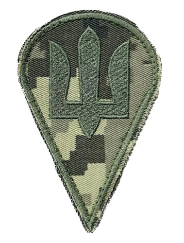 UKW33.Ukrainian Special Operations Forces Trident sleeve patch OD Trident on Pixel camouflage. Velcro backing. $9.95