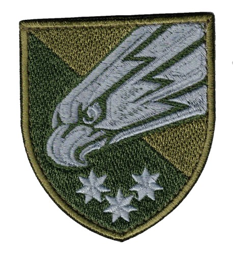 UKW50.Ukrainian sleeve patch for the 81st Separate Airmobile Brigade. Subdued. Based in the cities of Kostiantynivka, Druzhkivka, Kramatorsk and Poltava - the vast majority in the area immediately adjacent to the combat zone in the Donetsk region. The brigade was formed after the beginning of Russian invasion in the fall of 2014. The personnel of the brigade received their baptism of fire in late 2014 early 2015, during the defense of the Donetsk airport and adjacent areas. $9.95