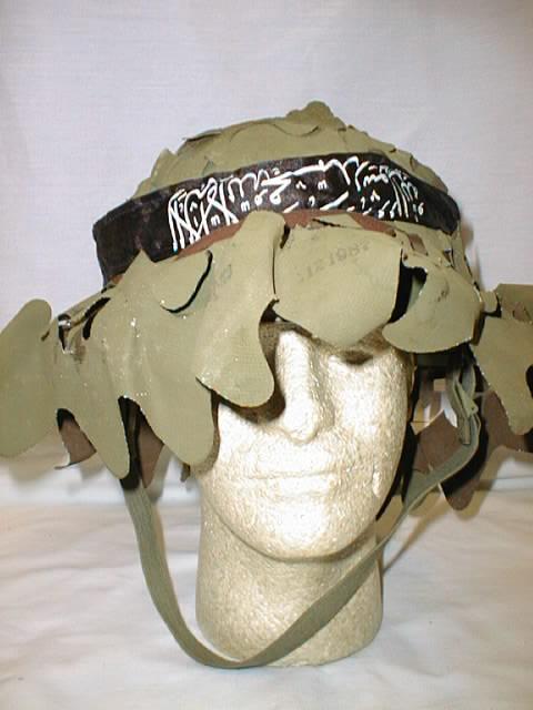 | SKH2.Bosnian Muslim Kevlar helmet with leafy cover and muslim band. SOLD |