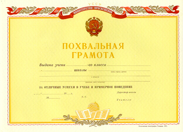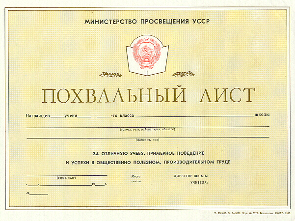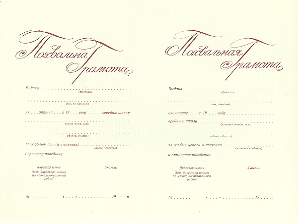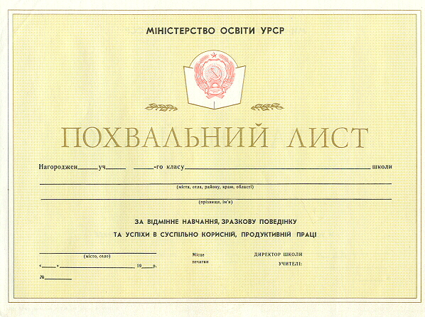 text,opposite side Ukrainian text.Given for graduation with high grades after each school
